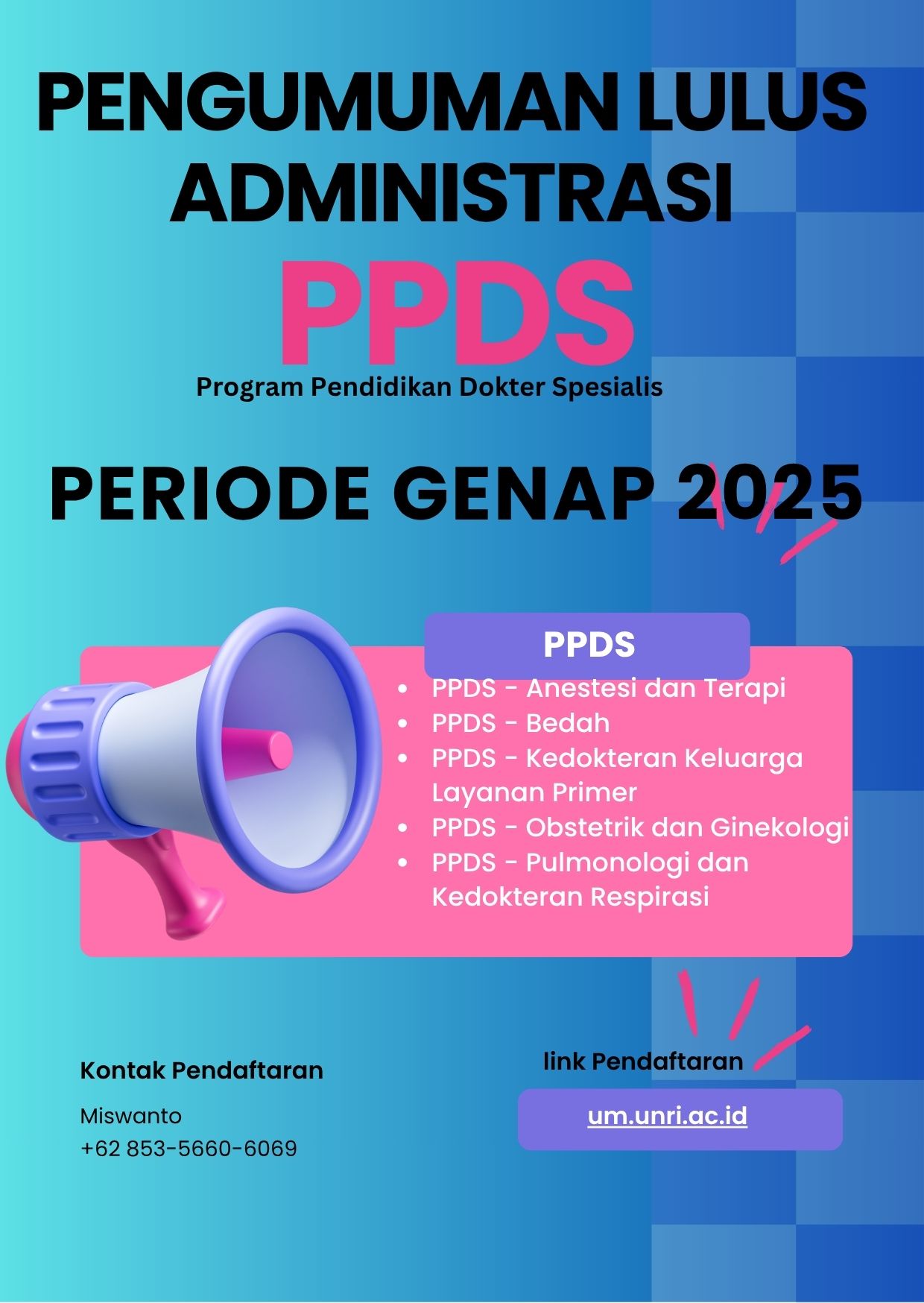 PENGUMUMAN HASIL SELEKSI ADMINISTRASI PPDS FK UNRI SMT GENAP 2024/2025