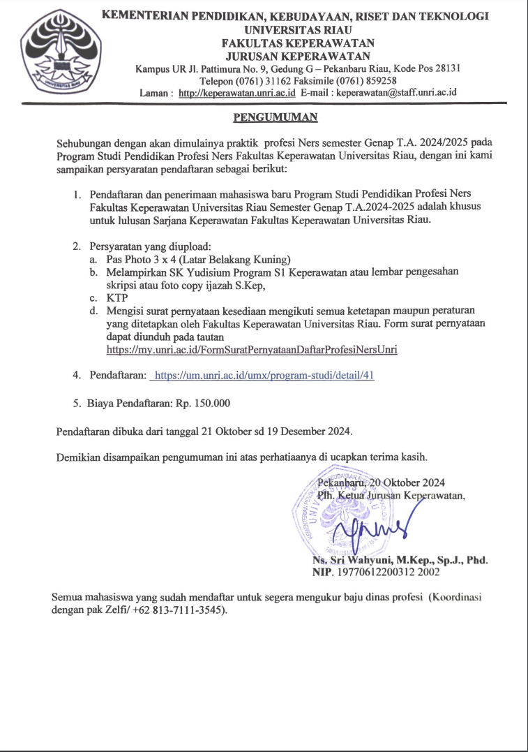 Program Studi NERS - Kelas Reguler